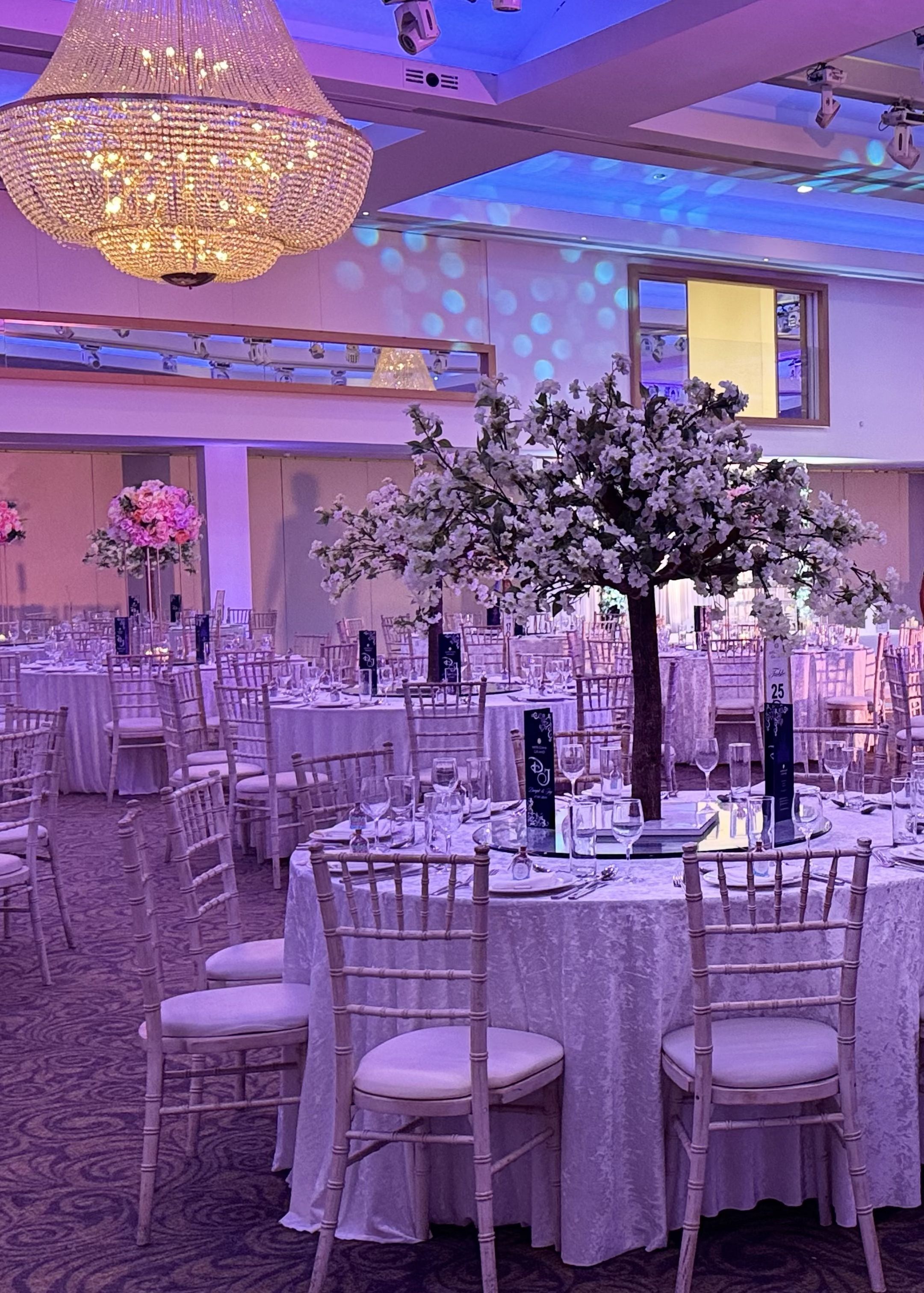 - Uplights around the venue to give walls a colour wash to suit décor and theme